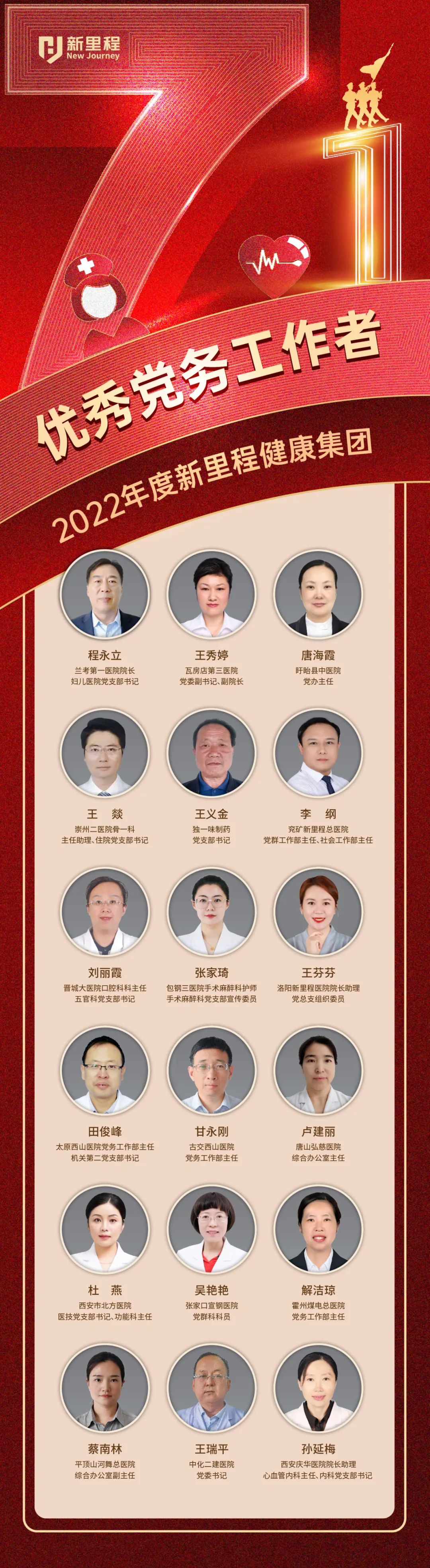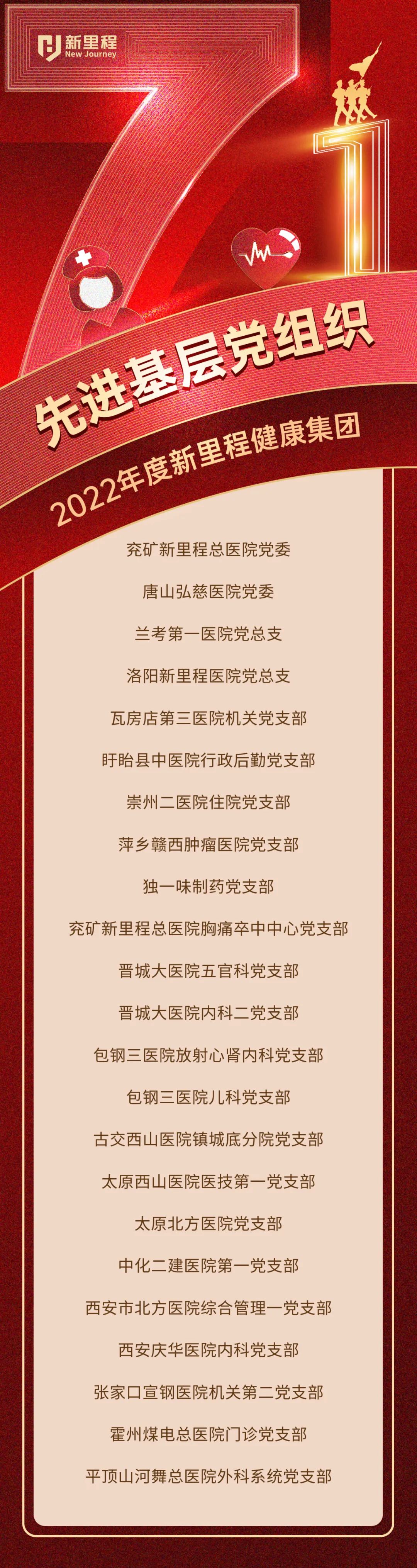 先锋引领发展,奋斗铸就辉煌。在中国共产党成立102周年之际,我们向集团全体党员致以节日的问候,向获得集团表彰的23个先进基层党组织、59名优秀共产党员和18名优秀党务工作者致以热烈的祝贺。你们是bv1946伟德官网健康事业的开拓先锋和奋进代表,全集团都要学习你们的优秀品质、奋斗精神和 “敢作为、敢争先、敢创新、敢担当”的精神品格。